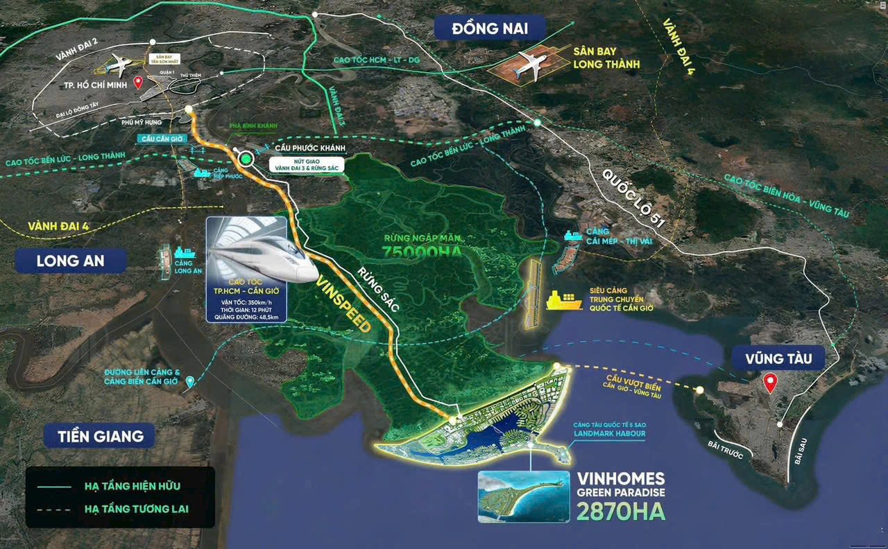 Sở hữu địa thế hiếm có “tựa rừng – hướng biển”, Vinhomes Green Paradise còn đón đầu làn sóng tăng trưởng mạnh mẽ nhờ hàng loạt dự án hạ tầng trọng điểm đang và sắp được triển khai tại Cần Giờ. Đây chính là “cú hích kép” về giao thông và quy hoạch, mở ra dư địa tăng giá bền vững cho toàn khu vực: