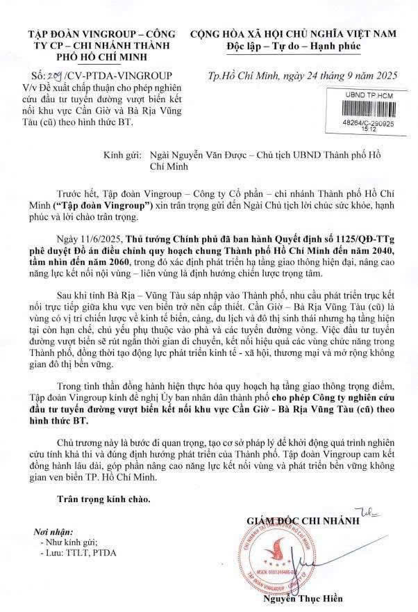 Theo kiến nghị, cử tri đánh giá cao chủ trương hợp nhất Bình Dương, Bà Rịa-Vũng Tàu với TP.HCM. Đây là sự kết hợp sức mạnh, tạo động lực phát triển vùng, đặc biệt trong vai trò trung tâm kinh tế, tài chính, công nghệ của cả nước. Để tiếp tục phát huy thế mạnh của khu vực Bà Rịa-Vũng Tàu cũ về tiềm năng du lịch và cảng biển, cử tri kiến nghị Chính phủ sớm đầu tư phát triển cảng Cái Mép - Thị Vải thành cảng trung chuyển quốc tế. Đồng thời xây dựng cầu nối Cần Giờ - Vũng Tàu, tuyến đường sắt tốc độ cao kết nối TP.HCM - Bà Rịa - Bình Dương nhằm phát huy thế mạnh kết nối giao thông, phục vụ xuất nhập khẩu và logistics.