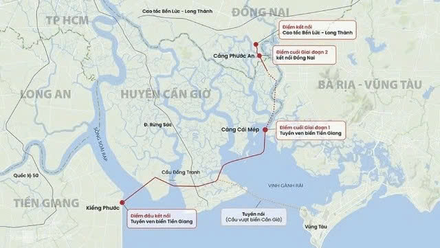 Trước khi sáp nhập, các địa phương, trong đó có TP.HCM cũng đang nghiên cứu đầu tư tuyến đường ven biển phía nam dài 941 km, đi qua 9 tỉnh, thành (cũ) gồm: Bà Rịa-Vũng Tàu, TP.HCM, Tiền Giang, Bến Tre, Trà Vinh, Sóc Trăng, Bạc Liêu, Cà Mau và Kiên Giang. Tuyến này được xác định là trục giao thông quan trọng, kết nối TP.HCM với vùng ĐBSCL. Với riêng TP.HCM, Sở Xây dựng đã xác định tuyến đường ven biển bắt đầu từ QL50 (Đồng Tháp), băng qua sông Soài Rạp để vào Cần Giờ (TP.HCM), kết nối với cảng trung chuyển quốc tế Cần Giờ, cảng Phước An và kéo dài đến cao tốc Bến Lức - Long Thành (Đồng Nai). Các địa phương đang nghiên cứu các phương án khả thi, trong đó có phương án giai đoạn 1 đầu tư tuyến chính cùng đường kết nối với đường ven biển Bà Rịa-Vũng Tàu qua cầu vượt biển Cần Giờ và phương án đầu tư tuyến chính cùng đường vào cảng Cái Mép trong giai đoạn 1.